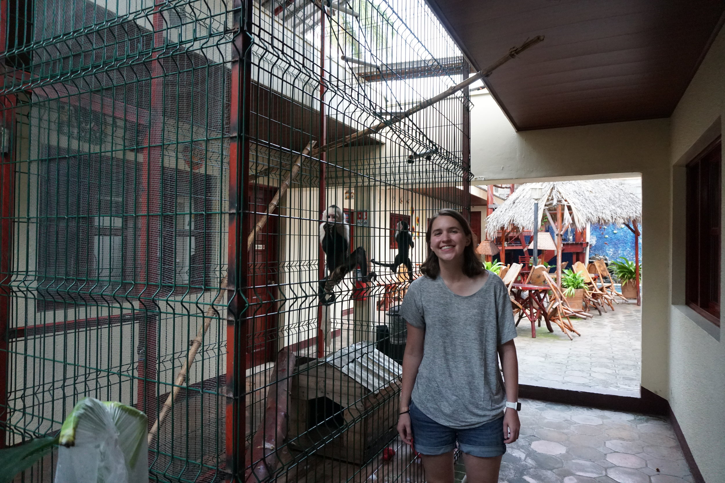I checked in to the hotel where I was greeted at the front desk. He was very welcoming and helpful and showed me to my room right by the pool. The most exciting thing for me, though, was all of the animals that Art Hotel has! I spent a while playing with the two monkeys, as well as attempting to talk to the parrots, and looking at the toucan. The monkeys were so cute and playful - I don’t think I saw them not playing once!